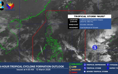The Philippine Atmospheric, Geophysical and Astronomical Services Administration said in a 4 a.m. advisory Thursday that Tropical Storm Nuri remains outside the country’s area of responsibility, located 1,405 kilometers east of Eastern Visayas.