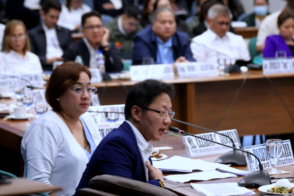 Couple Pacifico (right) and Cezarah Discaya testify before the Senate Blue Ribbon Committee on Monday (Sept. 8, 2025). They implicated some members of the House of Representatives and Department of Public Works and Highways officials in alleged anomalous government contracts of their construction firms. (PNA photo by Avito Dalan)