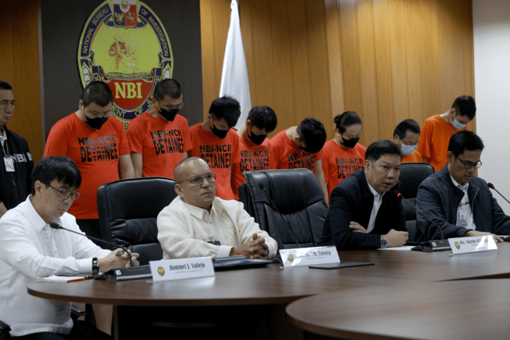 National Bureau of Investigation Director Angelito Magno (3rd from left) presents the illegal mining suspects during a press conference at the NBI headquarters in Pasay City on Monday (Feb. 16, 2026). The suspects were arrested in Barangay Gango, Libona, Bukidnon on Feb. 9. (PNA photo by Yancy Lim)
