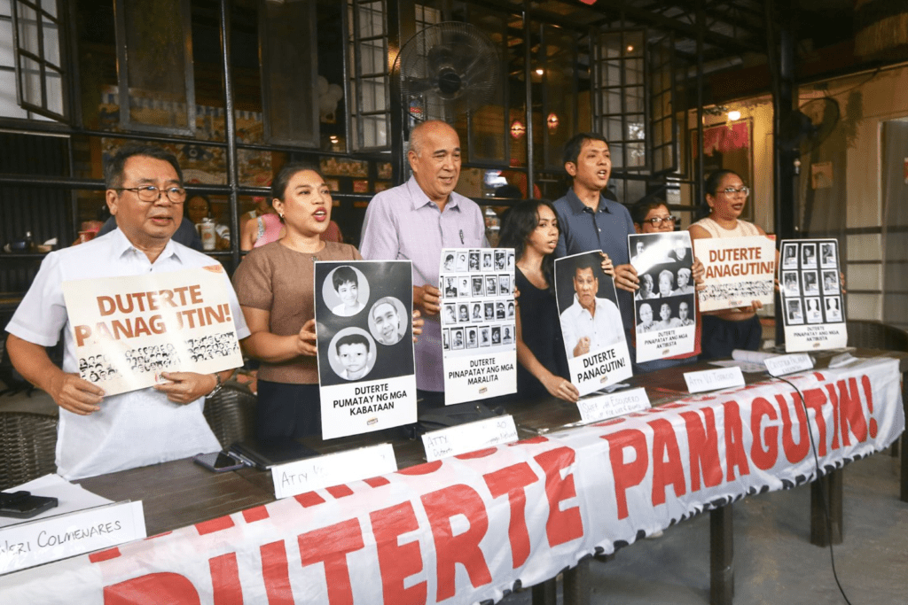 Families of extrajudicial killing victims will send a delegation to The Hague, Netherlands for former president Rodrigo R. Duterte’s confirmation hearing at the International Criminal Court, they announced at a press conference with lawyers and human rights advocates in Quezon City on Tuesday (Feb. 17, 2026). The hearing is scheduled before the Pre-Trial Chamber I on Feb. 23 at 10 a.m. (5 p.m. in PH). (PNA photo by Joan Bondoc)